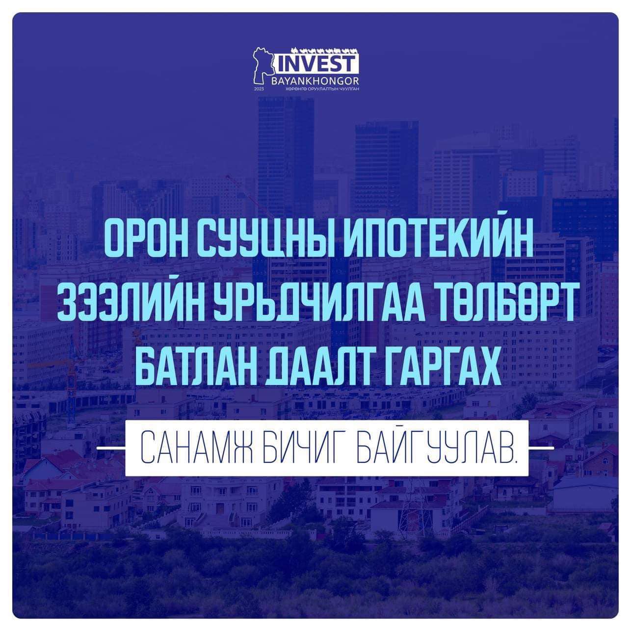 Баянхонгор аймгийн иргэдэд орон сууцны ипотекийн зээлийн урьдчилгаа төлбөрт батлан даалт гаргах хамтын ажиллагааны санамж бичиг байгууллаа Дэлгэрэнгүй