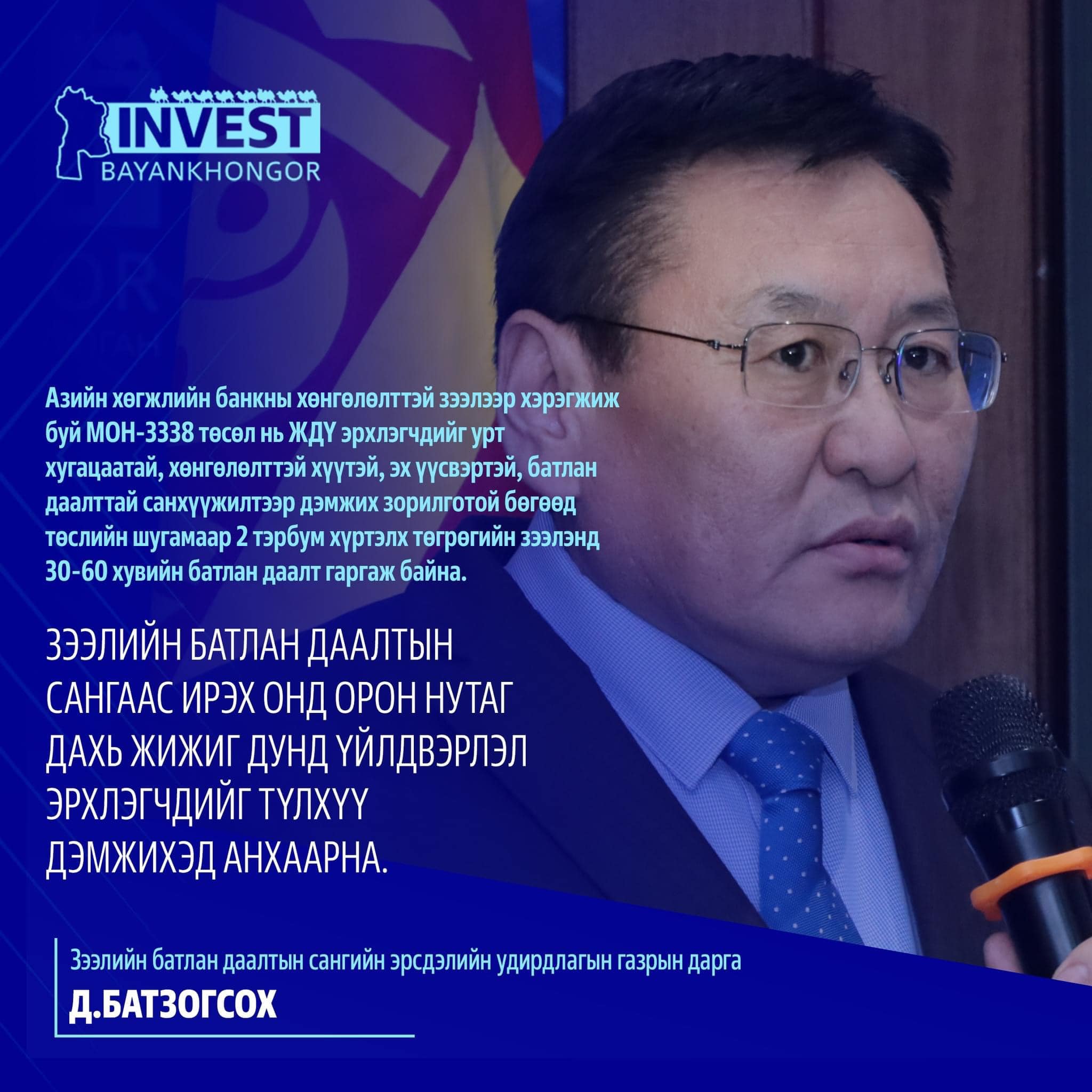 Зээлийн батлан даалтын сангаас ирэх онд орон нутаг дахь жижиг дунд үйлдвэрлэл эрхлэгчдийг түлхүү дэмжихэд анхаарна. Дэлгэрэнгүй